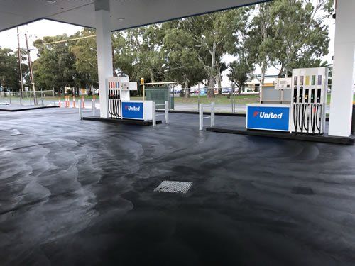 This site is a new United Service Station. The colour looks great and the sealer helps protect the 1,700 SQM of concrete.